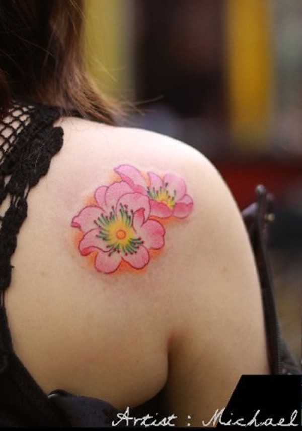 女生肩背精美的花卉纹身_女生纹身图案大全_纹身图吧