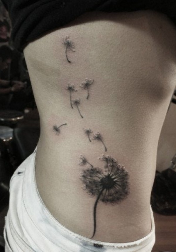 女生腰部唯美的蒲公英纹身_女生纹身图案大全_纹身图吧