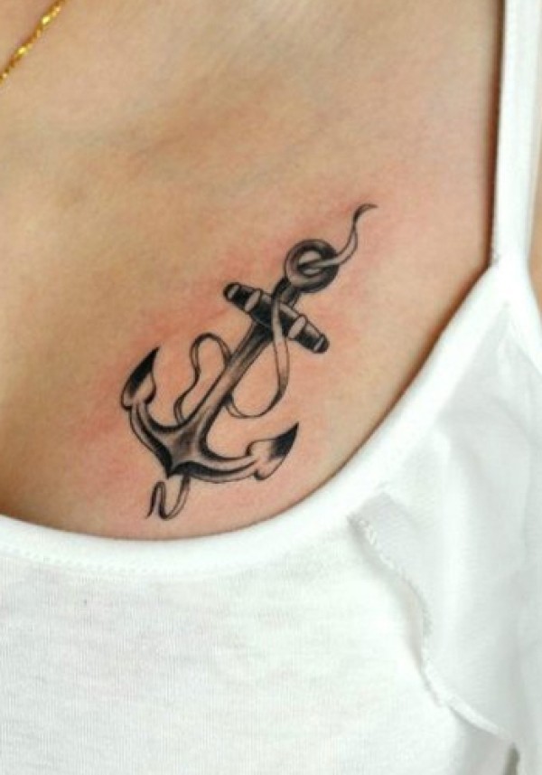 女生胸部时尚的船锚纹身_女生纹身图案大全_纹身图吧