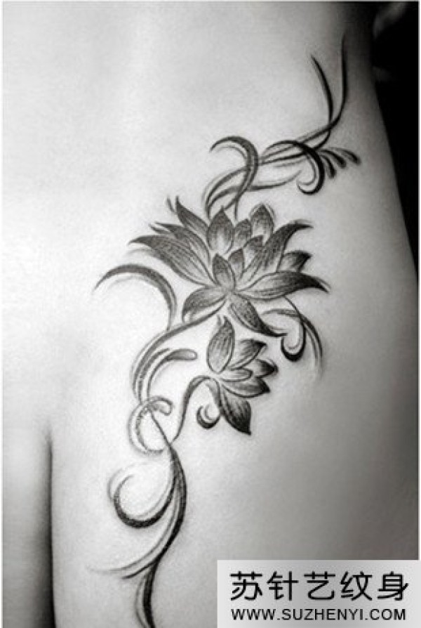 女生臀部唯美黑白莲花纹身_女生纹身图案大全_纹身图吧
