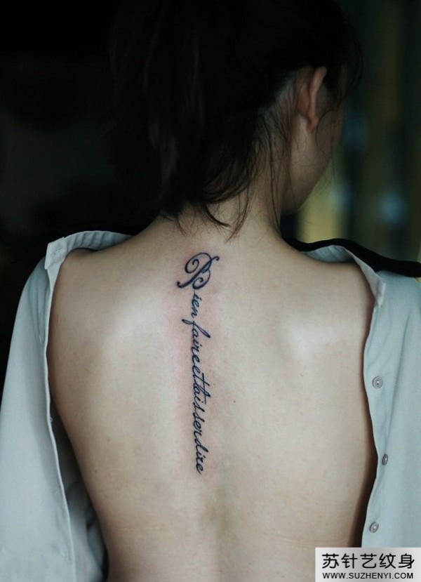 后背法文精美的女生纹身_女生纹身图案大全_纹身图吧