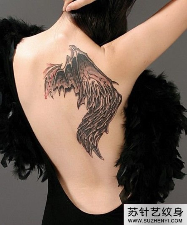 女生后背创意设计翅膀纹身_女生纹身图案大全_纹身图吧