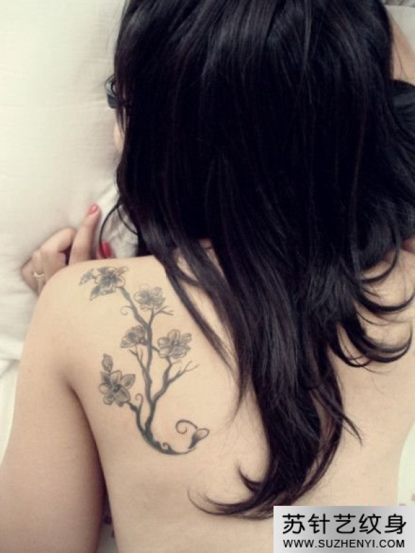 女生背部唯美梅花纹身图案_女生纹身图案大全_纹身图吧