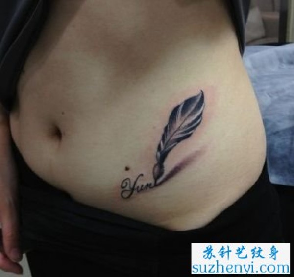女生腹部羽毛纹身图案_女生纹身图案大全_纹身图吧
