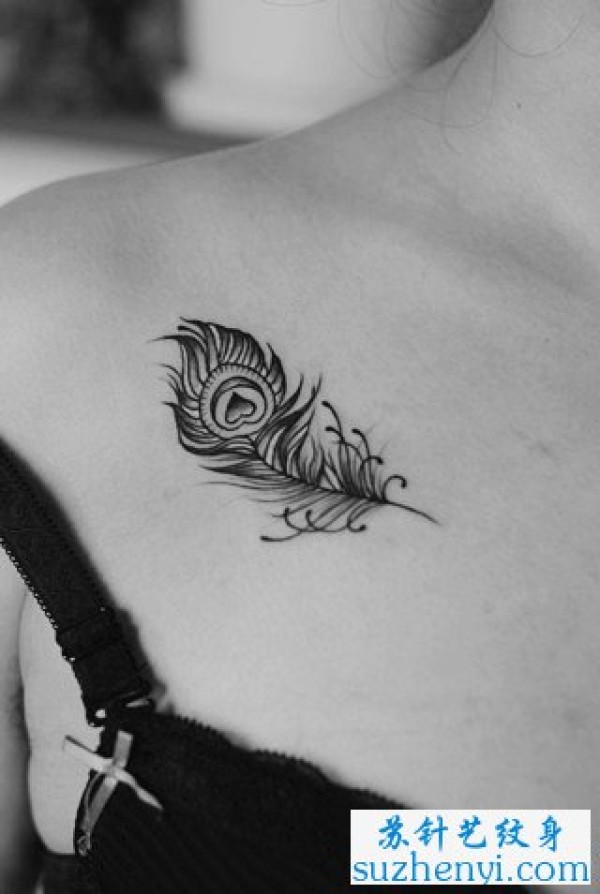 唯美的女生胸前羽毛纹身图案纹身图片_女生纹身图案大全_纹身图吧