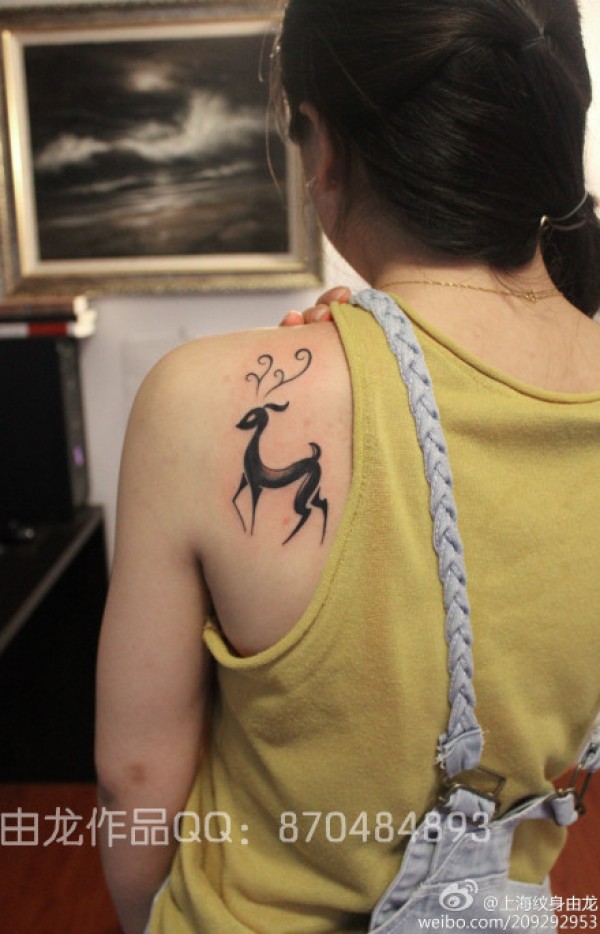 女生后肩小鹿纹身图案_女生纹身图案大全_纹身图吧