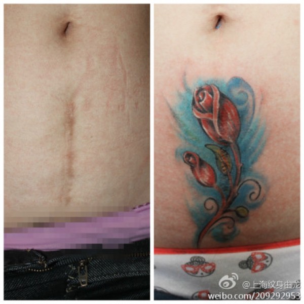 女生剖腹产疤痕遮盖纹身_女生纹身图案大全_纹身图吧