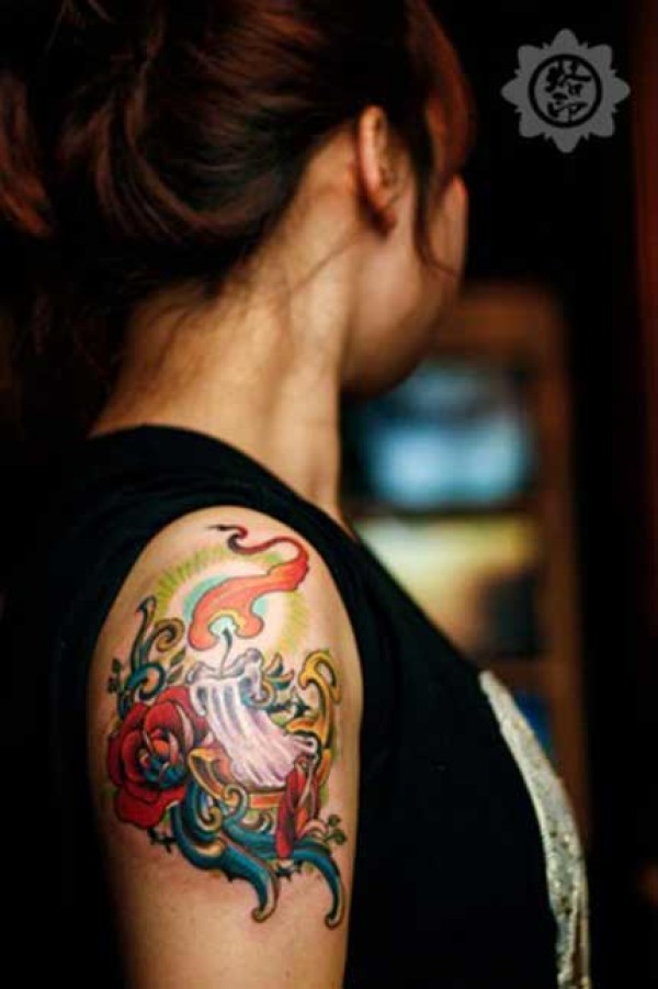 女生时尚个性蜡烛纹身_女生纹身图案大全_纹身图吧
