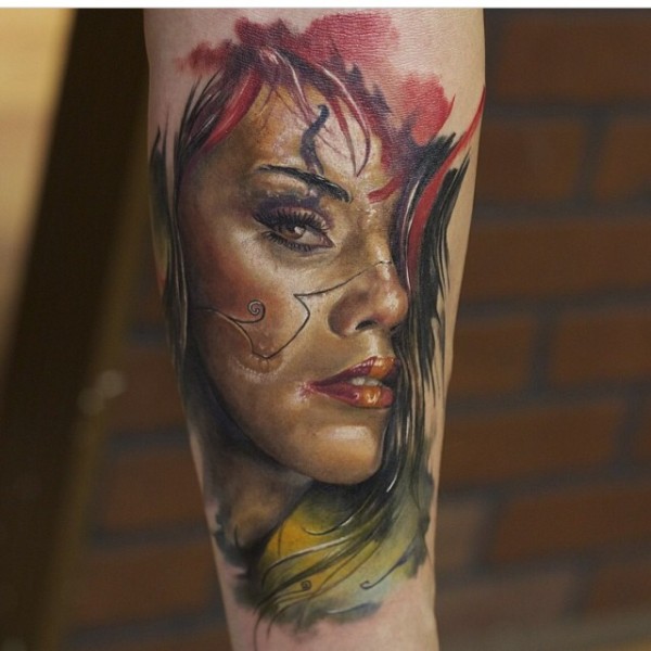 彩色半胛美女纹身_女生纹身图案大全_纹身图吧