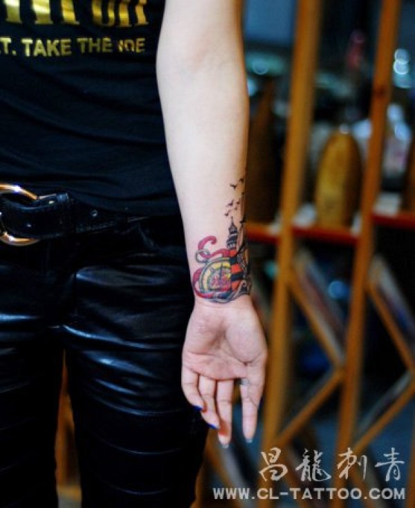 海洋纹身指北针文身灯塔纹身_女生彩色_女生纹身图案大全_纹身图吧