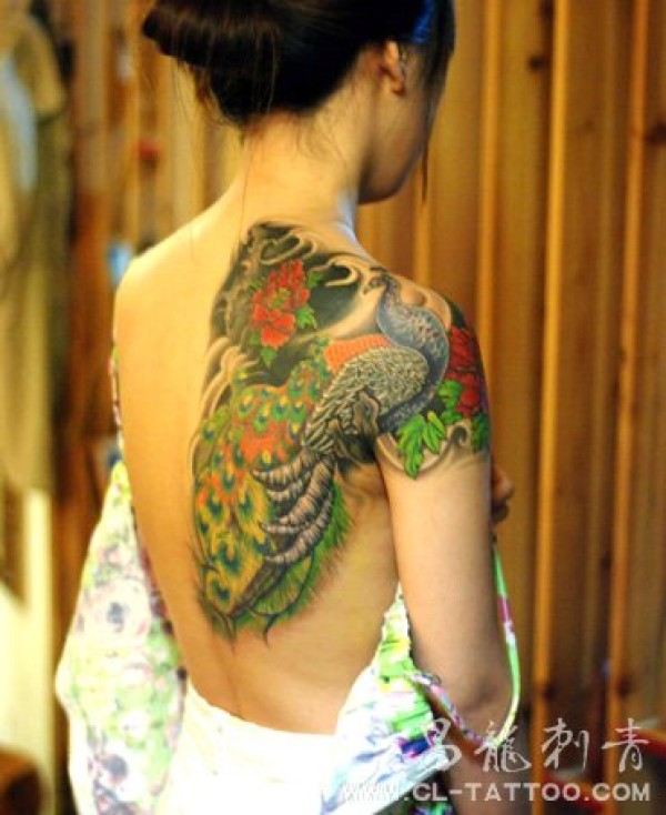 福州修改纹身孔雀文身女人后背文身_女生彩色_女生纹身图案大全_纹身图吧