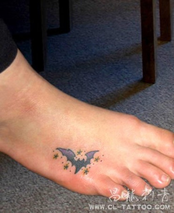 小蝙蝠纹身脚背文身_女生彩色_女生纹身图案大全_纹身图吧