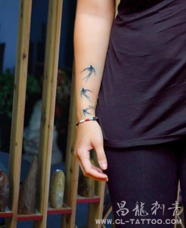 燕子纹身女人手臂刺青_女生黑白_女生纹身图案大全_纹身图吧