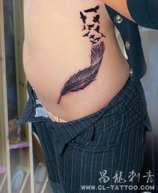 羽毛纹身候鸟文身性感刺青_女生黑白_女生纹身图案大全_纹身图吧