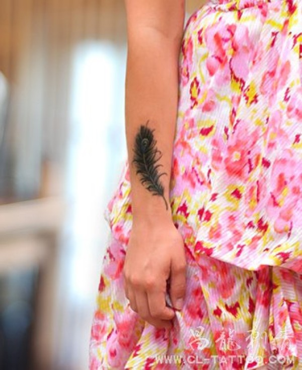 美女小臂纹身羽毛纹身刺青_女生黑白_女生纹身图案大全_纹身图吧