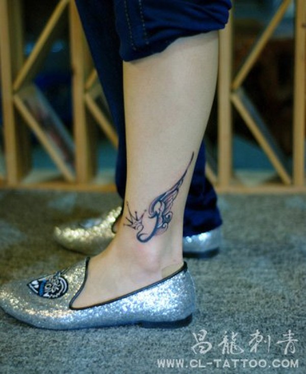 皇冠纹身黑白翅膀文身脚踝纹身_女生黑白_女生纹身图案大全_纹身图吧