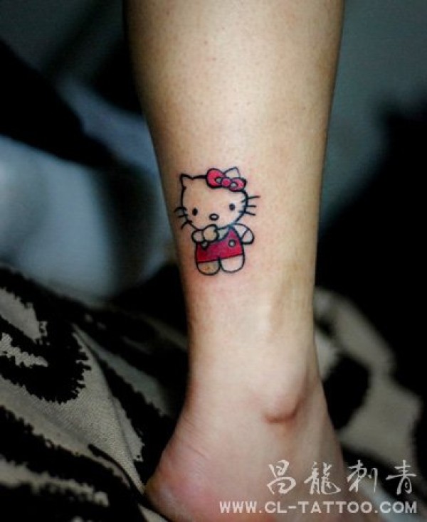 女生小腿KT猫纹身_女生彩色_女生纹身图案大全_纹身图吧
