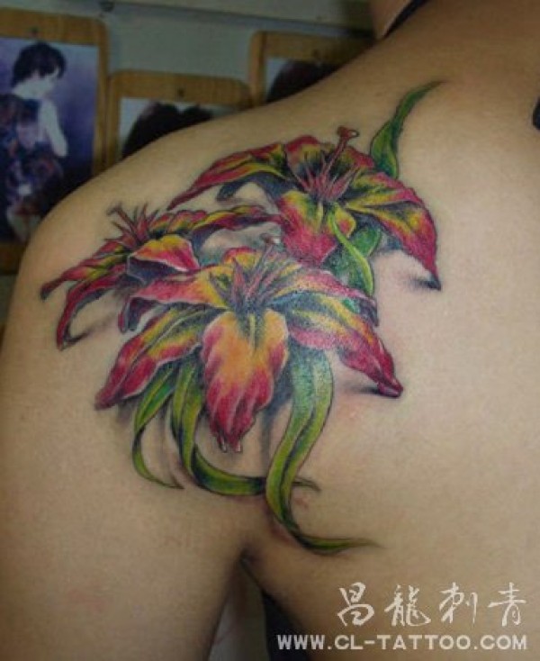 彩色立体百合_女生彩色_女生纹身图案大全_纹身图吧