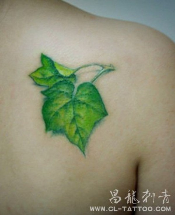 立体写实绿叶文身作品_女生彩色_女生纹身图案大全_纹身图吧