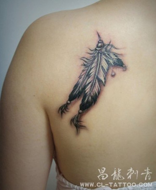 黑白羽毛文身_女生黑白_女生纹身图案大全_纹身图吧