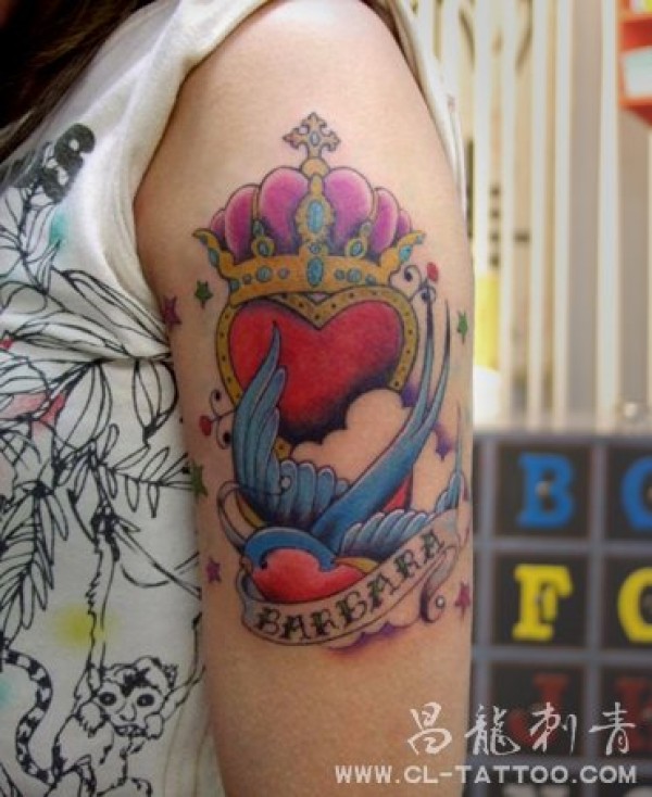 彩色皇冠与蜂鸟_女生彩色_女生纹身图案大全_纹身图吧