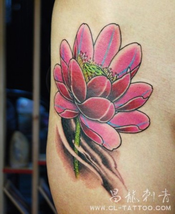 女士重彩莲花_女生彩色_女生纹身图案大全_纹身图吧