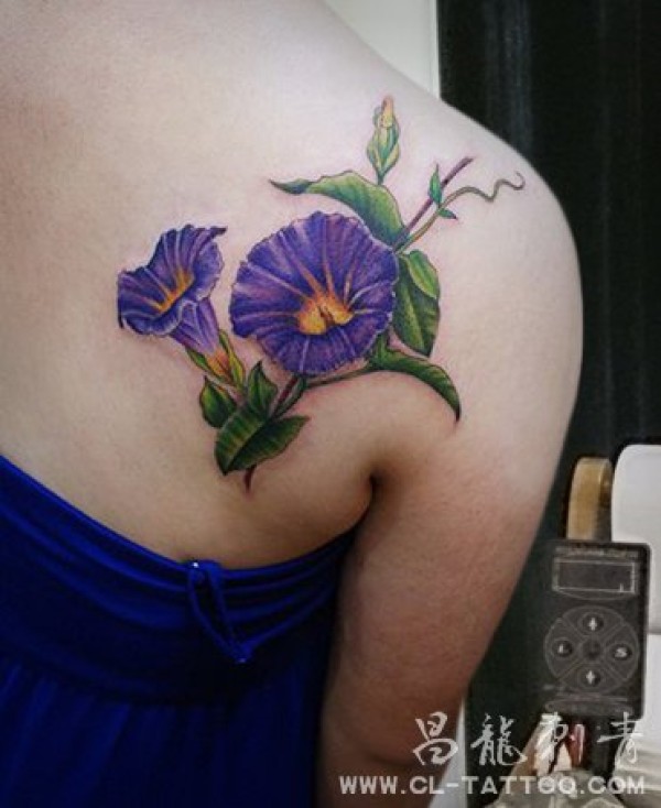 女士背部重彩小花_女生彩色_女生纹身图案大全_纹身图吧