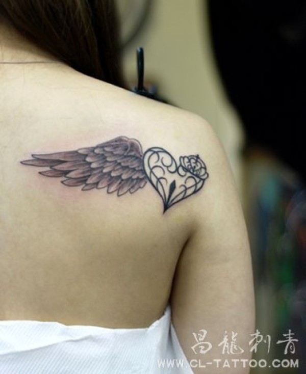 翅膀心锁_女生黑白_女生纹身图案大全_纹身图吧