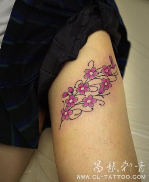 女生大腿时尚小樱花_女生彩色_女生纹身图案大全_纹身图吧