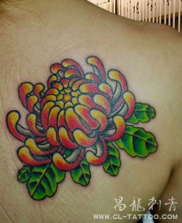 恢复后彩色菊花效果_女生彩色_女生纹身图案大全_纹身图吧