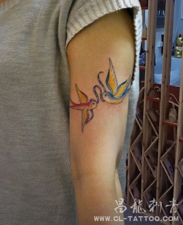 双飞燕_女生彩色_女生纹身图案大全_纹身图吧