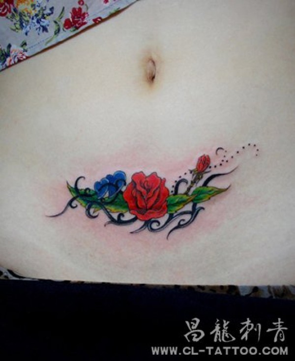 剖腹产遮盖疤痕刺青作品_女生彩色_女生纹身图案大全_纹身图吧
