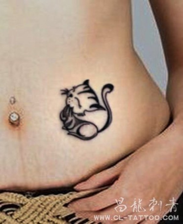 性感部位抽象小猫文身_女生黑白_女生纹身图案大全_纹身图吧