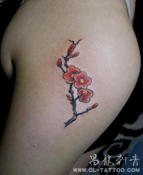 梅花文身作品_女生彩色_女生纹身图案大全_纹身图吧