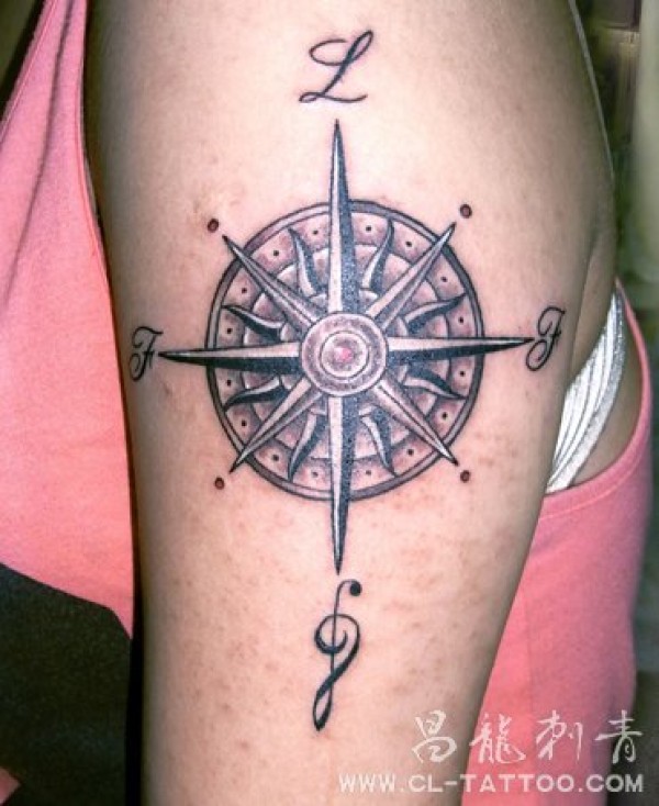 指北针刺青作品_女生黑白_女生纹身图案大全_纹身图吧