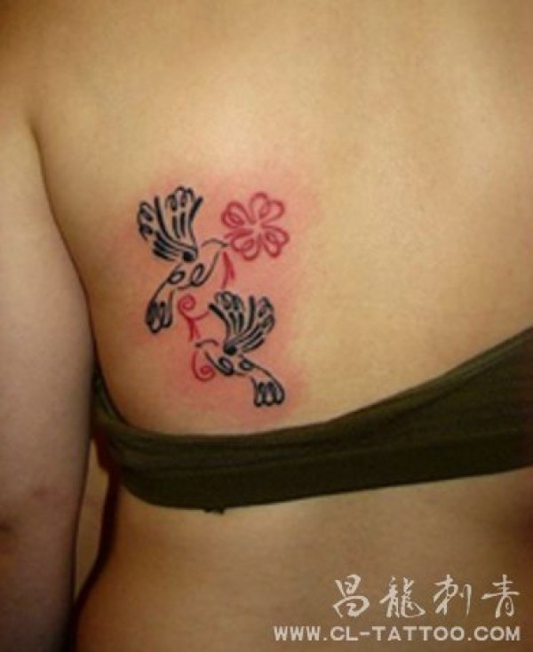 背部抽象小鸟_女生彩色_女生纹身图案大全_纹身图吧