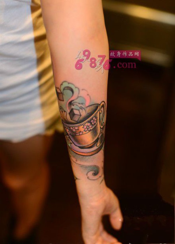 欧美风咖啡杯手臂纹身_欧美纹身图案大全_纹身图吧