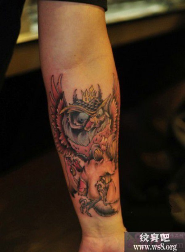 手臂上创意欧美风皇冠猫头鹰huangguanmaotouying图案_欧美纹身图案大全_纹身图吧