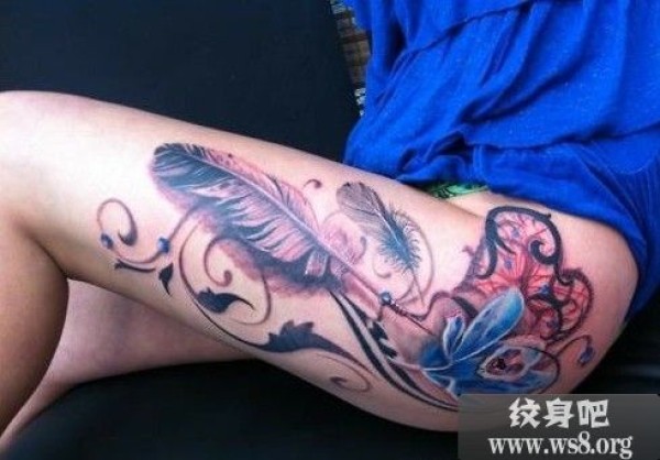 男人腿部精美时尚的欧美花卉纹身图案_欧美纹身图案大全_纹身图吧