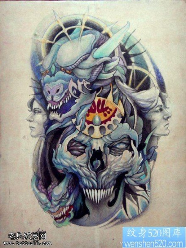分享一款欧美彩色鬼头纹身图案_欧美纹身图案大全_纹身图吧