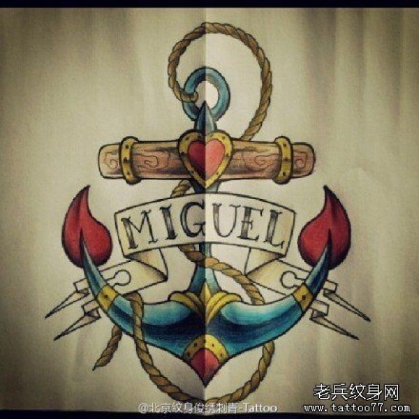 欧美彩色船锚纹身图案_欧美纹身图案大全_纹身图吧