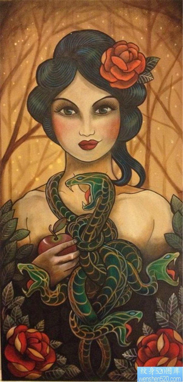 一幅欧美彩色人物女郎纹身作品_欧美纹身图案大全_纹身图吧
