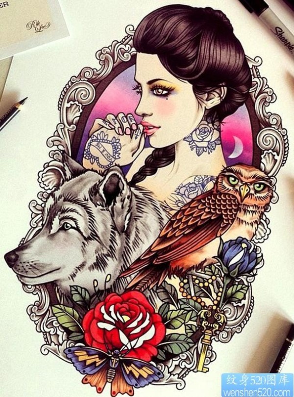 纹身520图库推荐一幅彩色欧美女郎纹身作品_欧美纹身图案大全_纹身图吧