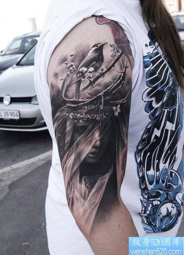 推荐一款大臂欧美素描纹身图案_欧美纹身图案大全_纹身图吧