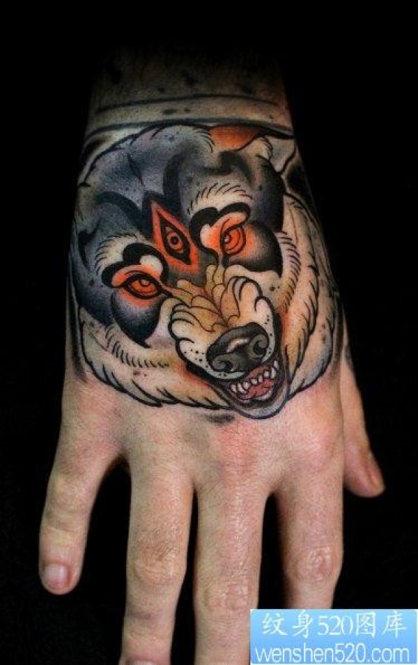 手背上一幅欧美狼头纹身图片_欧美纹身图案大全_纹身图吧