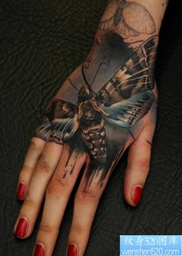 女人手背时尚潮流的欧美蛾子纹身图片_欧美纹身图案大全_纹身图吧