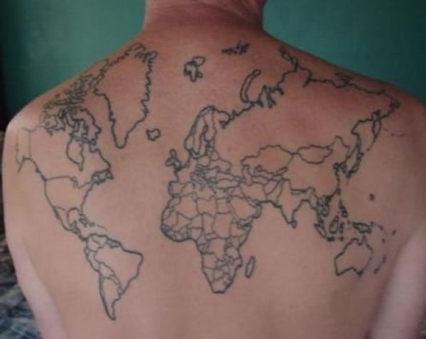 欧美纹身爱好者把世界地图纹在了后背上世界地_欧美纹身图案大全_纹身图吧