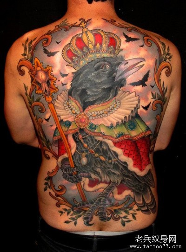 推荐一款欧美满背乌鸦皇冠纹身作品_欧美纹身图案大全_纹身图吧