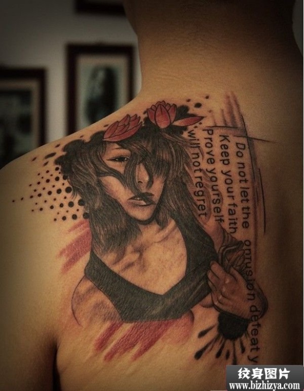 后肩欧美纹身女头像图案图片_欧美纹身图案大全_纹身图吧