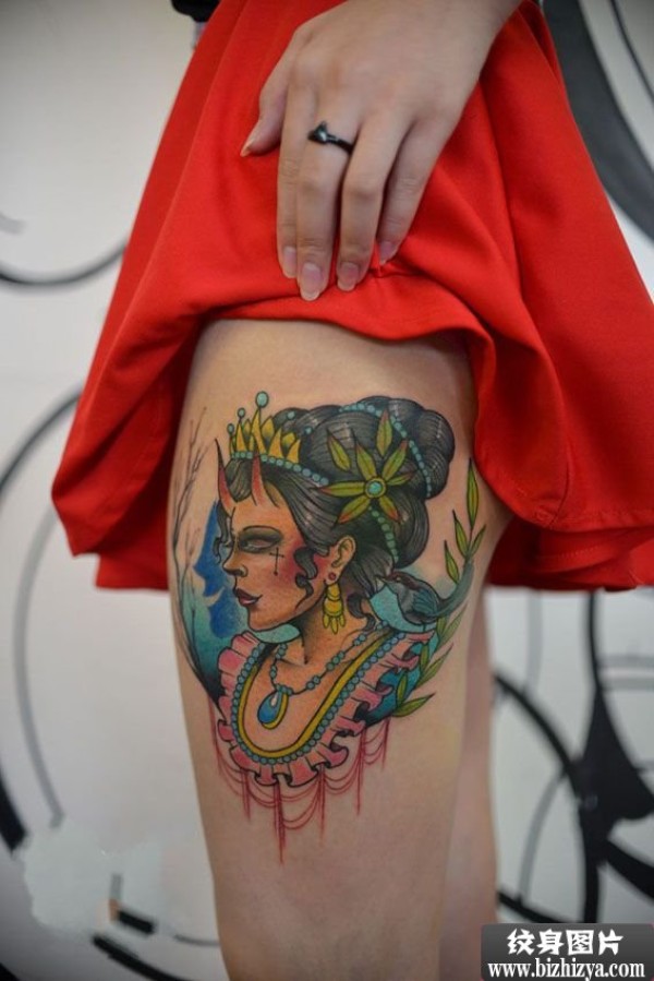 腿部一款另类很酷的欧美女鬼纹身图案_欧美纹身图案大全_纹身图吧